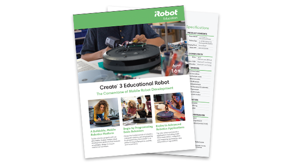 Use these resources to get started with Create 3, the next generation of iRobot’s affordable, trusted, all-in-one mobile robot development platform. Grasp the fundamentals of robotics, computer science, and engineering by programming the Create® 3 to perform simple behaviors, sounds, and movements, or tap into advanced applications including multi-robot exploration, navigation & mapping, and telepresence capabilities.